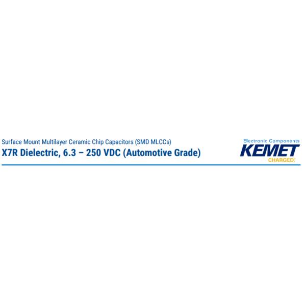 Kemet SMD Auto X7R, Ceramic, 0.068 uF, 10%, 250 VDC, X7R, SMD, MLCC, Temperature Stable,